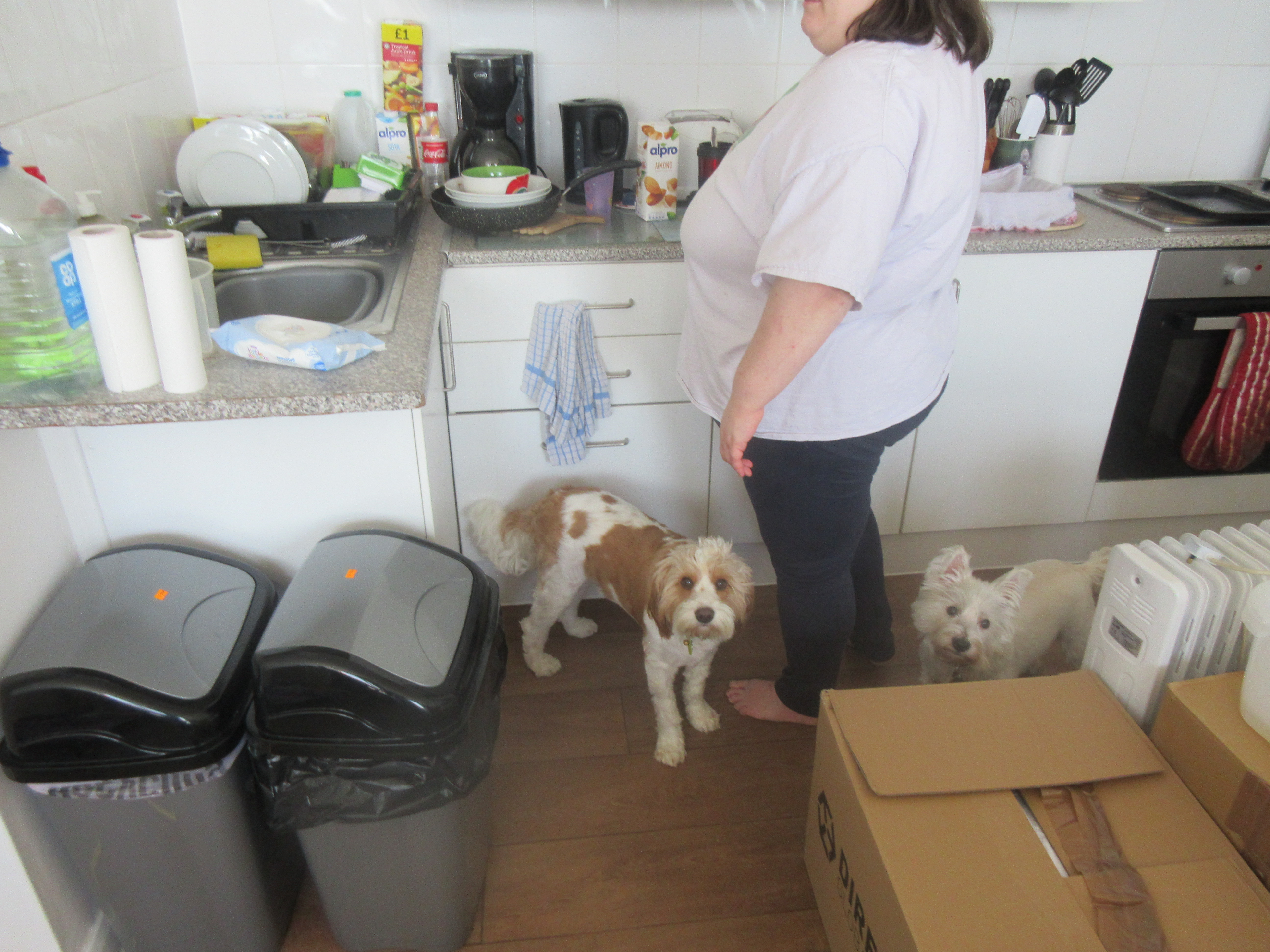 Like everyone else has told you: we live downstairs now. Well, not all the way downstairs, because Poppy and Elvis the Jack Russels live all the way downstairs with their humans. But downstairs from where we lived before anyhow, and Mummy calls it, "Moving downstairs," when she talks about it, so I guess I can call it that too.