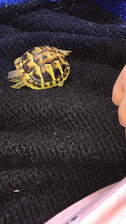 Mummy brought a special box for Artemis to ride to the vet in. It's plastic with a bit that lifts up on the top where Mummy can put the tortoise in to it before locking Artemis inside, and has handles so Mummy can carry it easily. It's loads better than the cardboard box with holes in Artemis came home in. Mummy says it's meant for rodents, but it looks like it will work just fine for the tortoise. Mummy's going to put some hay in it so it's a bit more comfortable for Artemis. I didn't know they made pet carriers for rodents. Mummy didn't either until she found this by accident. Maybe she should also get one for Mollie? I'd show you what it looks like, but I don't have a photo of it.