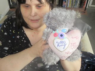 It turned out to be the last thing she ever brought any ofus, since it was right after that she went in to hospital for the last time. When we were sorting her stuff after shedied, I grabbed the little pink teddy bear that was the last thing I everbrought her (which I got her during one of her recent hospital stays) and thetwo teddy bears are now sat together on one of the shelves that my cuddly toysare stored on.