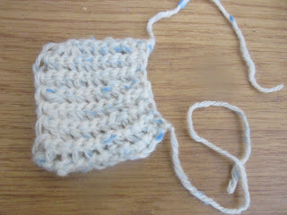 I had to use a regular crochet hook, since I didn’t have anyof the longer ones for Tunisian Crochet, but I wasn’t the only one doing itwith a regular crochet hook. Here’s thelittle sample piece I did while learning: