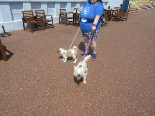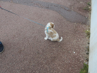 Like I said, I didn't walk for long though, even with Lilie to walk with. I got scared again, and was really tired too. I mean, it was a lot for a little puppy like me to deal with. So Mummy carried me some more, and Daddy took Lilie's lead back (he was holding Lilie most of the time, so Mummy could focus on me) and they just walked with us.