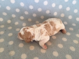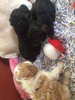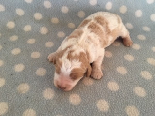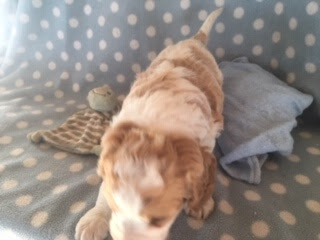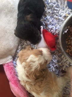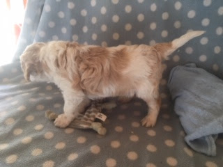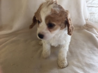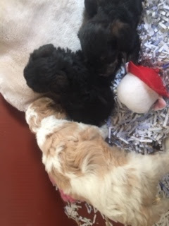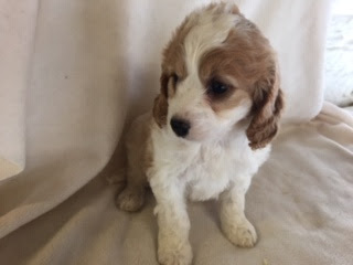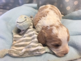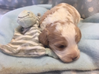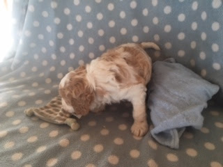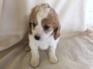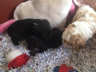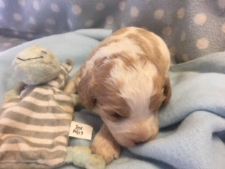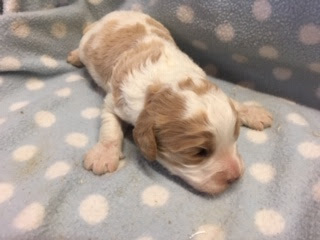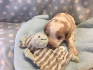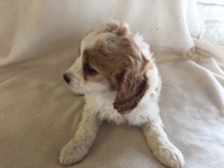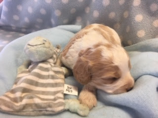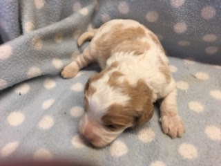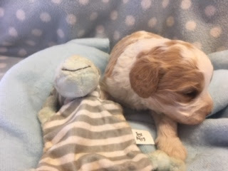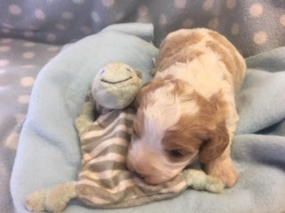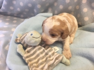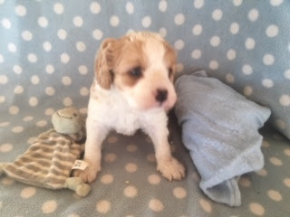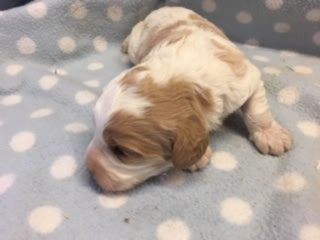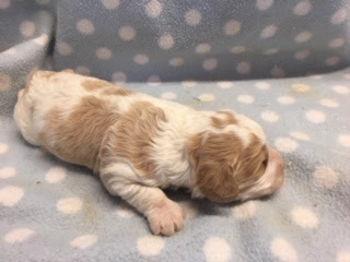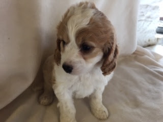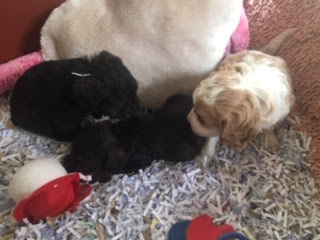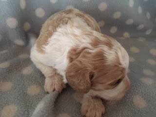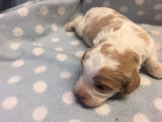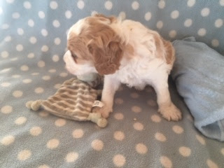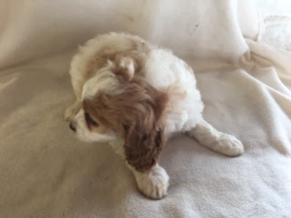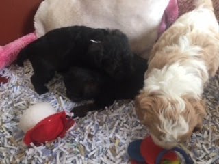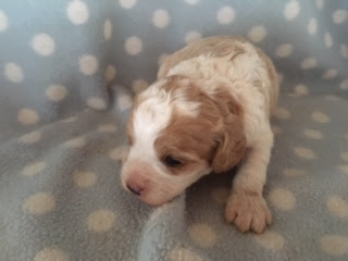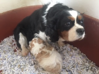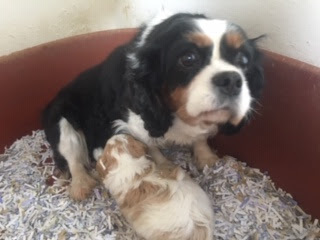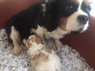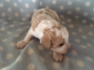 A Cavapoo - for those who don't know - is a Cavalier King Charles Spaniel x Toy Poodle. In Logan's case, his Mother (Posy) is a Cavalier King Charles Spaniel, and his Father (Barkly) is a Toy Poodle. Posy is a tri-colour (white, black, and tan) and Barkly is mostly cream with a chocolate brown patch on his nose. I don't have any photos of Barkly, but you'll get to see Posy among the photos in this post.