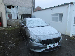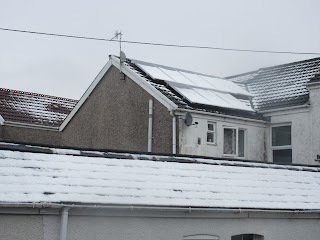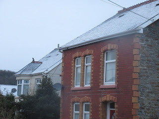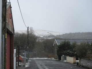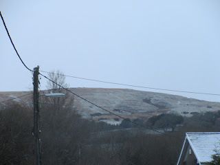 We got photos of the snow-covered mountains, and a nearby house with snow on it, later in the morning when more snow had fallen but the sun was properly up and trying to melt the snow even as it hit the ground. Anyway, here are those photos: