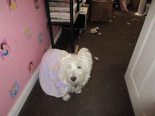 My Nana sent me a princess outfit. A bandanna that says, "Princess Paws," on it, and a clip on bow. So yesterday - which was when it arrived - I played dress up with Mummy again, only this time I was Princess Lilie. Or, "Lilie Princess Paws," as Daddy called me. Here are a couple of photos Daddy took of me in my princess outfit: