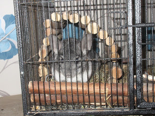 Joshua is a big help though. He comes to talk to me through the cage bars sometimes, which helps me to not feel so lonely. He didn't really do that much when Maizie was around. A quick, "Hi," now and then, but that's it. Since I've been by myself, he's been doing it more, and staying for longer chats. Like I said, it really helps me to not feel so lonely.