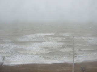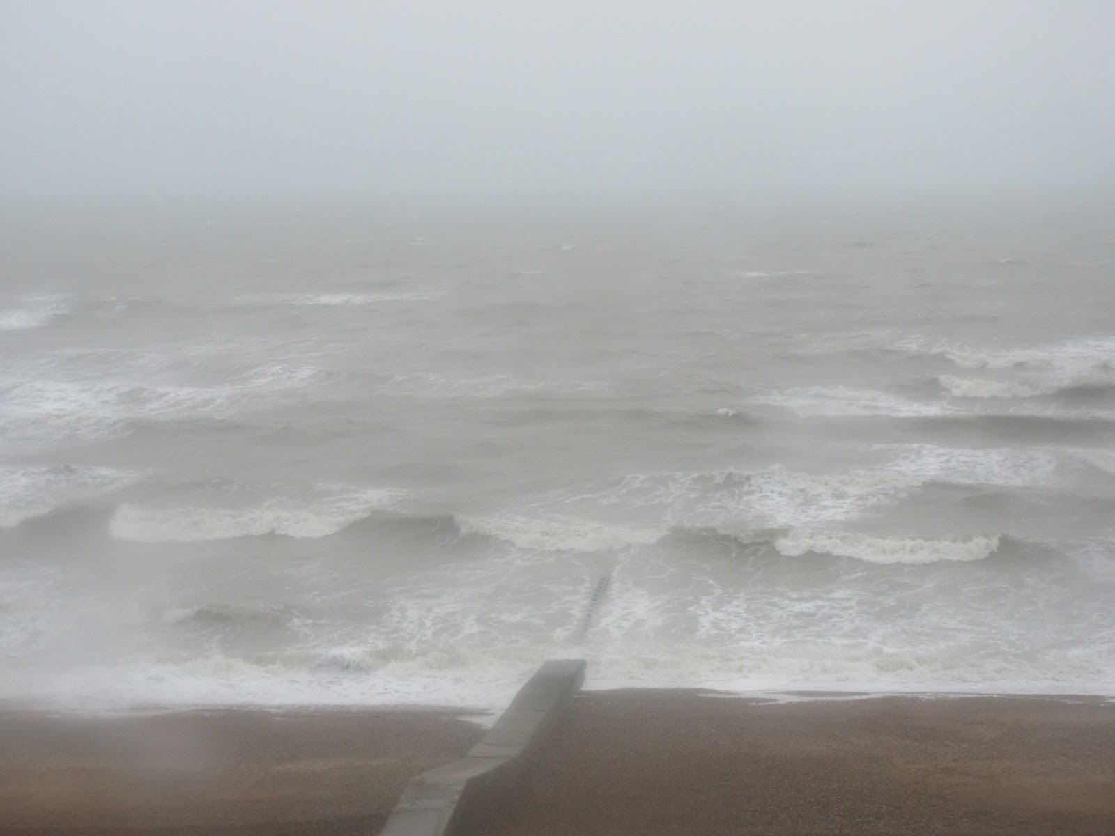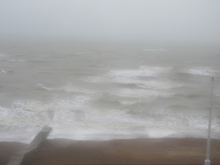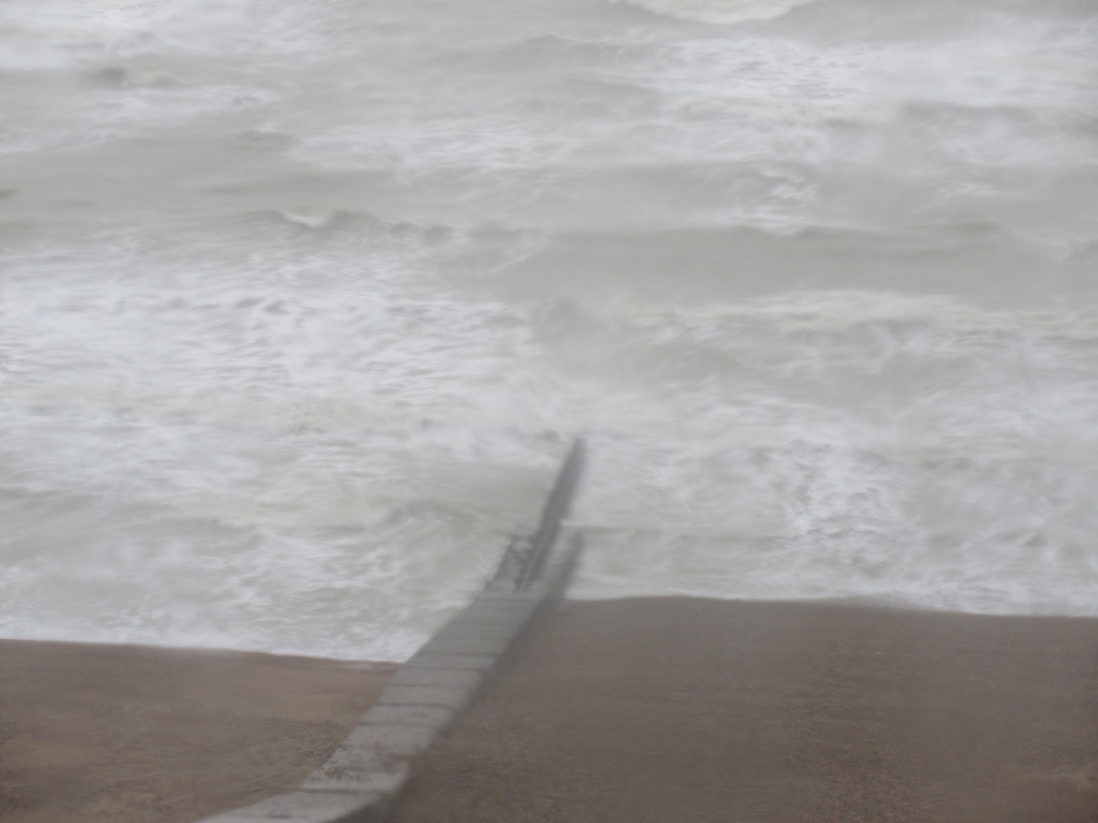 The weather and the ocean have both been pretty rough. You may be able to get some idea from the photos at the top of this post, which are photos of the ocean as seen from our window on November 28th (last Wednesday). And these from December 1st (this past Saturday):