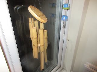 My gift exchange partner got me some great stuff. I got a needle knitting size Gage, a crochet hook size Gage, a selection box of some of my favourite brand of vegan chocolate, and this bamboo wind chime: