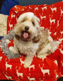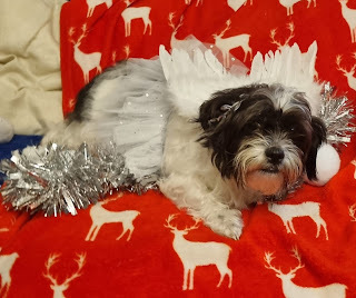 On December 19th we did a puppy holiday photo shoot. Since it wasn't just our dogs but also my Mam’s, and all of them were excited by the attention (though perhaps not entirely enthusiastic about the outfits) it ended up being a team effort between me, Kelly, and Mam. I was in charge of dressing dogs in outfits and attempting to persuade them to stay where we wanted them for the shots, while Mam and Kelly tried to get the photos before they got bored of staying still and ran off to play with the others. It was fun but challenging, and we didn't get all the shots we'd hoped for (like group shots) but they did well, and we did get most of the shots we'd hoped for, so I'd call it a successful puppy holiday photo shoot.