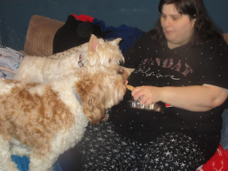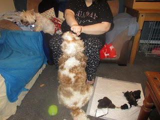 On Wednesday morning the groomer came to visit, so me and Logan got groomed.