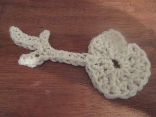 The other was this crochet key. It’s an old-fashioned style key with a heart-shaped piece at the end where you’d attach a ring to hang it up or put it on a keyring. I did it in white, because that’s the colour the ball of wool I grabbed turned out to be. Anyway, here’s a photo of it:
