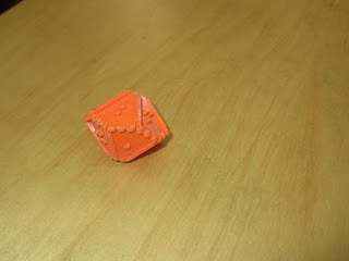 I tested the dice a bit between dealing with birthday messages on Facebook. It rolls better than the first ones, so it seems we're heading in the right direction with braille dice creation. YAY us!