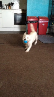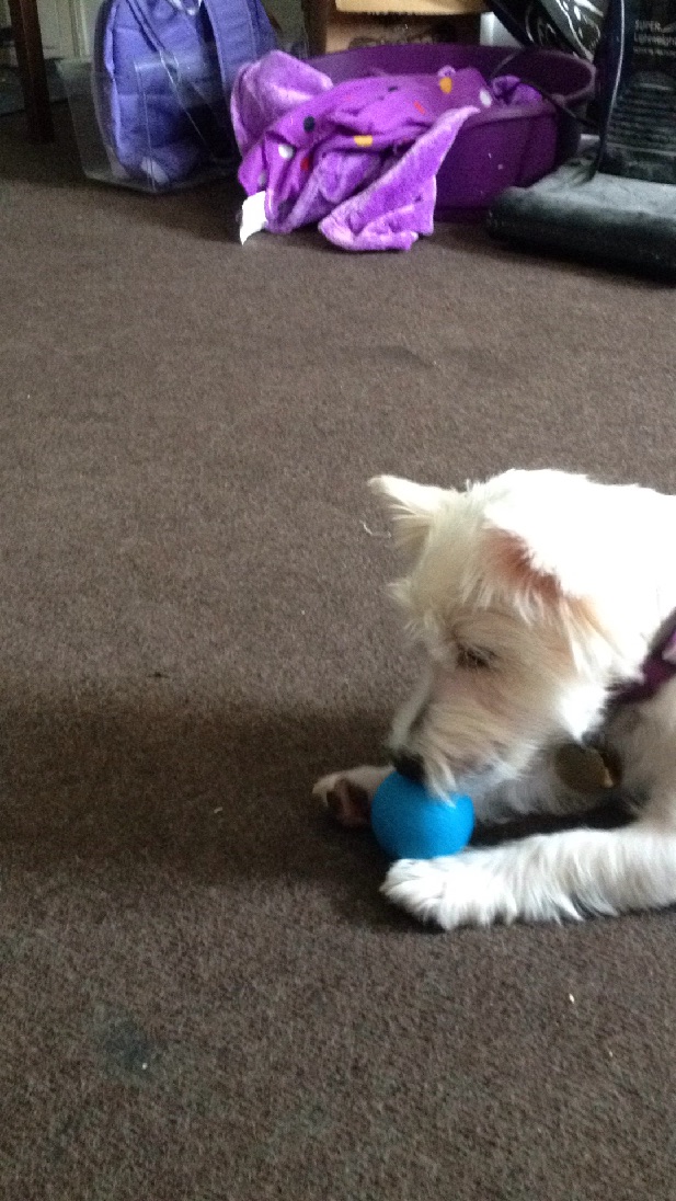 Also, since you can never have too many photos of me, here are a couple of photos Mummy took with her talking camera thing on her phone while we were playing with my jingly ball this past Saturday: