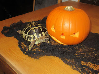 And here’s Artemis the tortoise with Mr. Pumpkin-Head: