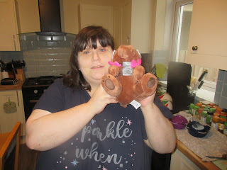 I had a late birthday present from Kelly. It was actually ordered before my birthday, but took a couple of weeks to get here. It’s a cuddly toy of a bear named Trinket. He’s a character from one of the games the Critical Roll group plays. And they, for anyone who doesn’t know, are a group of roleplayers who have videos of their games go up on YouTube and other platforms. Kelly and I both watch them (Kelly more reliably than me) and I love the character of Trinket the bear, so Kelly got me a cuddly toy of him. I mean, who wouldn’t want a cuddly toy of a bear in armour? Anyway, here’s a photo of me cuddling Trinket: