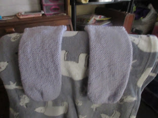 I finished making my purple loom knitted tube socks. So, here’s a photo of those: