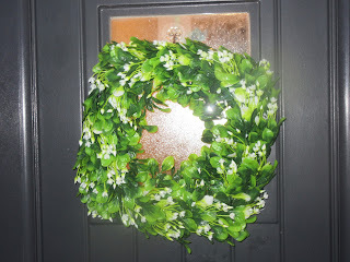 ~The above photo shows an artificial holiday wreath now hanging on our front door.
