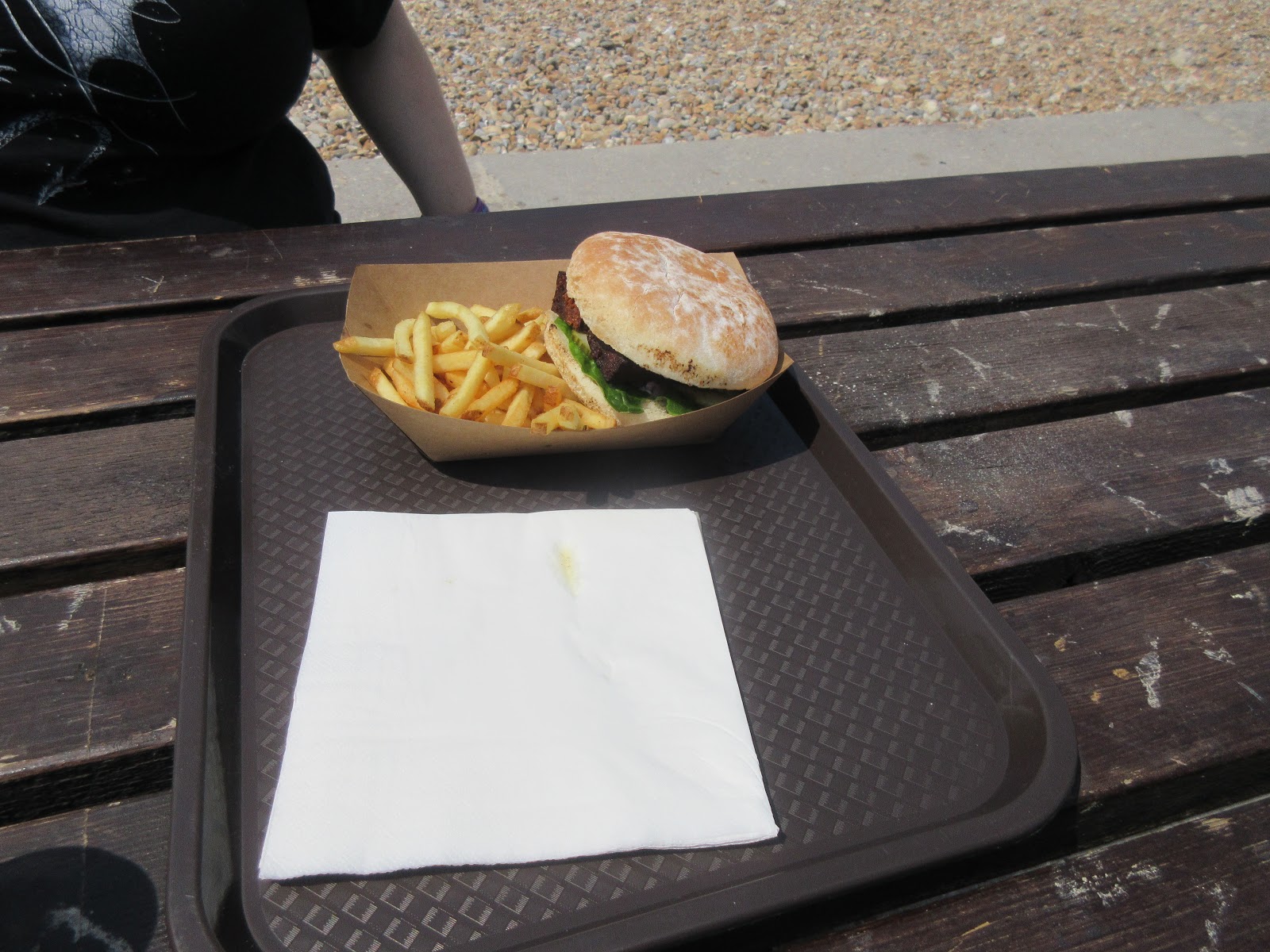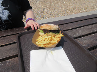 The place now known as "Goat's Ledge" used to be a fish and chip shop, but now it does more of a variety of foods. They still do fish and chips, but they also do salads, and cater to vegetarians and vegans. The guy who owns it now is the guy with the ice-cream cart that goes along the seafront most days. His ice-cream and sorbet is excellent, so we thought we'd try his actual cooking. Turns out that's great too. He does a fantastic tofu burger, and was even nice enough to make me one when we showed up earlier than the time he usually starts cooking them (he starts making things like that after noon, but made me one when we got there around 11:30am). He's a wonderful guy who really cares about his customers. He went and sorted me out a sorbet the other day too, when I wanted one and he was late bringing the ice-cream cart out because things were so busy. The service is absolutely fantastic - in fact, as I said, he really cares about his customers, and is prepared to put in a bit of extra effort just to make them happy - the food is delicious, and there are outside tables we can sit at with Lilie (he even provides a bowl of water for dogs who are sat out there, though it wouldn't matter too much to us if he didn't, since we always take water and a bowl with us for Lilie anyhow).