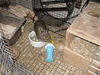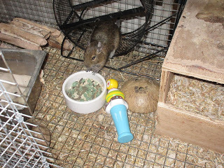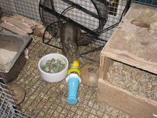 A couple of weeks ago, the human caretakers suddenly told us the Easter Bunny was coming. I seem to remember them saying the same thing around this time last year. I didn't see a bunny then, and I didn't see one this time either. Neither did my chinchilla sister, Maizie, nor my degu brother, Joshua. Even the Lilie dog said she didn't see any bunny (Maizie asked her... I wasn't about to talk to a dog... Not even to get the answer to a question like that).