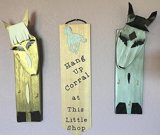 One of the many problems I had in my daughter's youth?Hang ups!Necklaces, rings, other objects easy to hang and easy to lose!One of the many loves my daughter had in her youth?Horses!My decorative solution?My new Hangup Corral functional folk art collection made from up-cycled wood and material! This collection will be available soon at our local Craft Gallery, but you can special order yours through my upcoming Kickstarter Campaign very soon!If you don't want to special order your own handmade colorful collection, but you think this is a great idea and you would love to support my creative solution to endless lost necklaces, rings or keys, subscribe for news on my new Patreon project!Aren't they cute?Subscribe below to receive news on these little cuties for youngsters with hang ups!