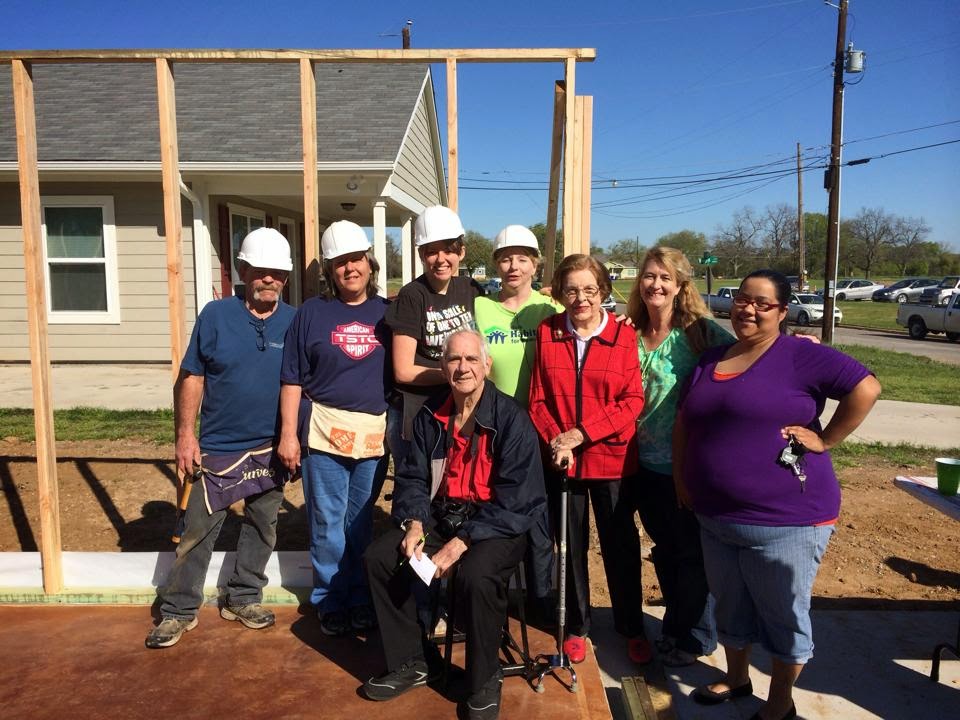 My family to the left of the homeowner, Hope, who told us, "A family that hammers together, stays together." We worked on the house behind us last month and the owners now live there.