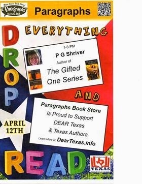 So, a Wonderful Thing is happening next week that brings reading to the forefront of my to-do list again. DEAR Texas is happening April 12--a day to drop everything and read a book... and rest. I will be working and traveling that day, but before I leave Paragraphs to come home, I'll pick up a good book. I've decided to take Monday, April 13 off to rest... and read. If you live in Texas, or are visiting for vacation, check the Dear Texas list of participating cities and bookstores across the state.