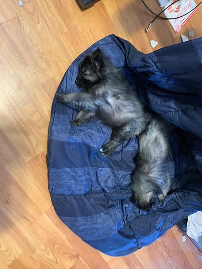 Here's the blurb - Angie Turner’s restaurant, The County Seat, is conveniently located near a first-class farmers market—so her menu is full of fresh ingredients. But a visiting culinary professor has just had a taste of something very unhealthy . . . Angie first meets Daniel Monet at a local mission, where she and her chef-in-training, Hope, are serving barbeque chicken poutine to the homeless. Monet is one of Hope’s teachers—but Angie’s boyfriend knows him from his youthful days in England. But soon, the bon vivant is no longer vivant. When Monet is found dead, with Hope’s prints on the wine glass next to him, it will be Angie who has to sauce out the real killer . . .Monday is a Facebook party with some of my cozy author friends.Tuesday is release day. (And I'll be sending my newsletter.)Wednesday I'm over at Dru's Musing - Or Angie is...Thursday we're doing a twitter chat with my publisher. So lot's of excitement around the release...But Dom, Angie's St. Bernard is more interested in the two new additions to our family. Dexter and Quinn are baby Keeshonds and sleeping in my office as I type this...