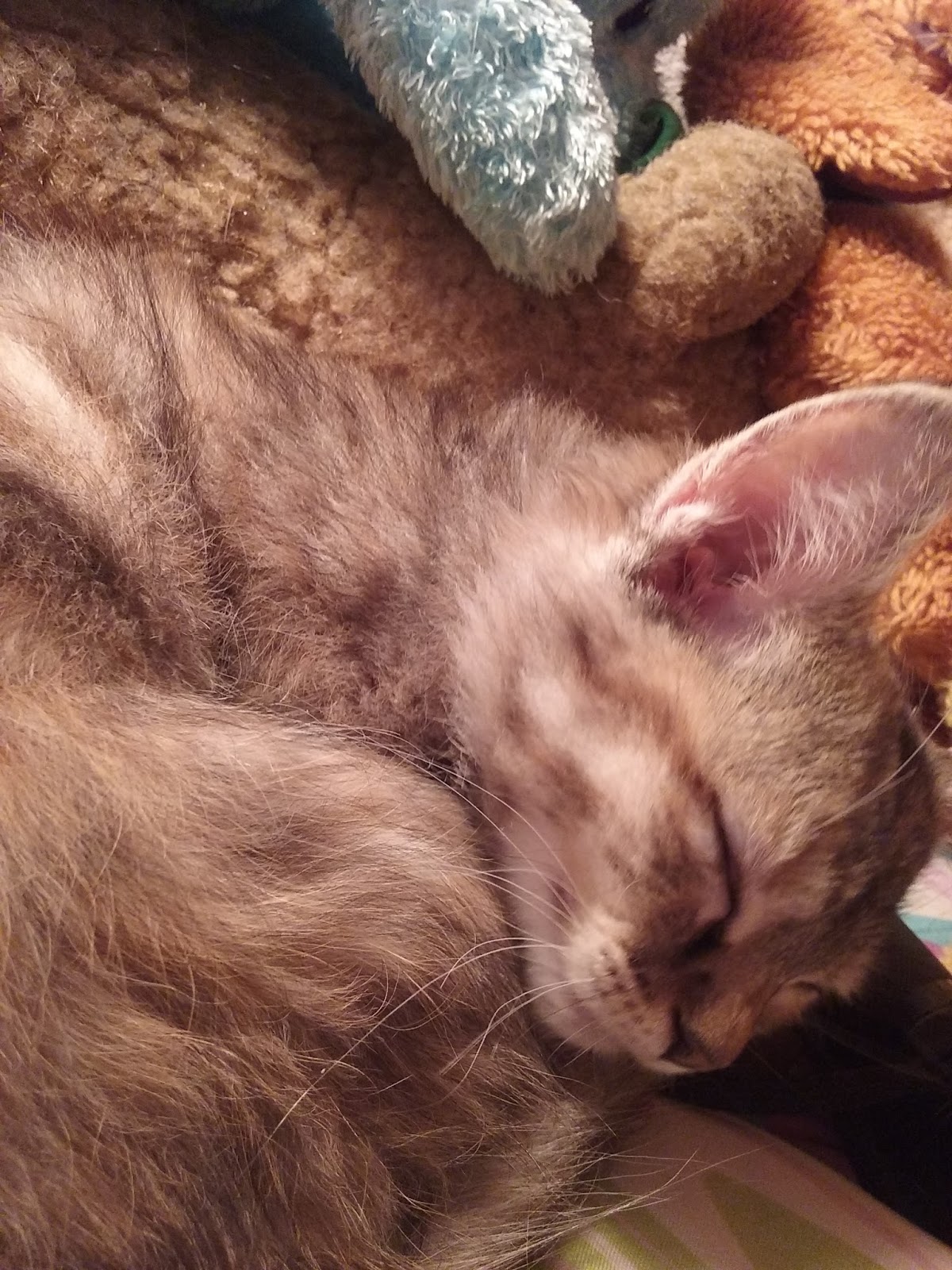 The fur ball is very likely a girl, but just in case she has a name which can belong to a boy or a girl. I don't trust myself with animal genders and didn't want her to be scarred for life if she turns out to be a he and had a name like Susan.