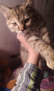 The little invader who is about the size of my hand but has enough personality for an elephant. She and Dog think they are enemies but I can tell they are warming up to each other.