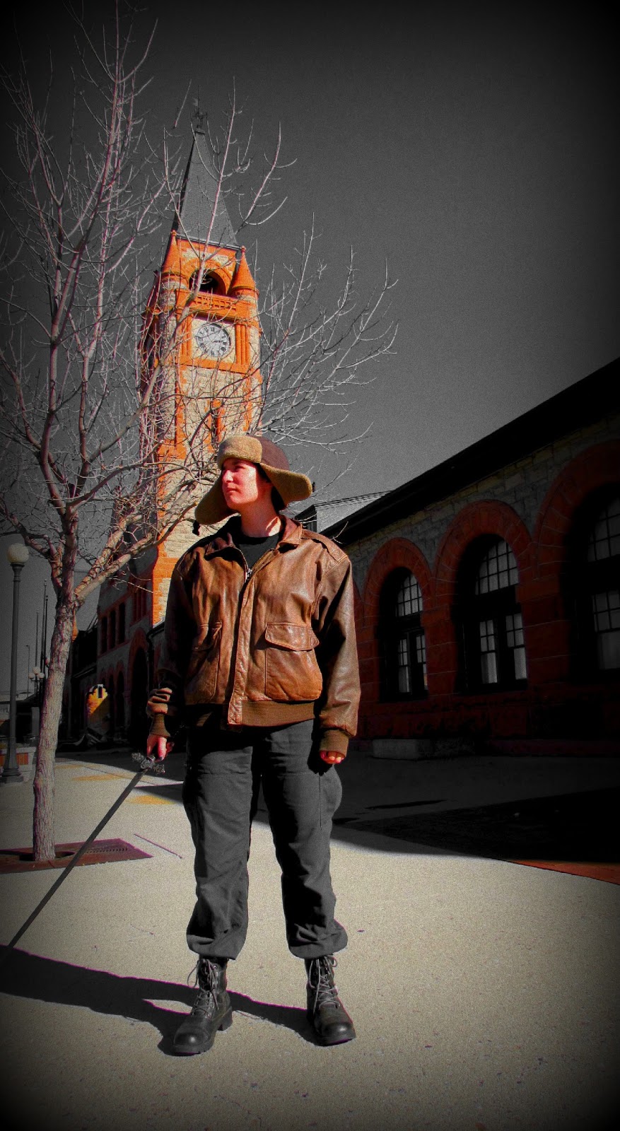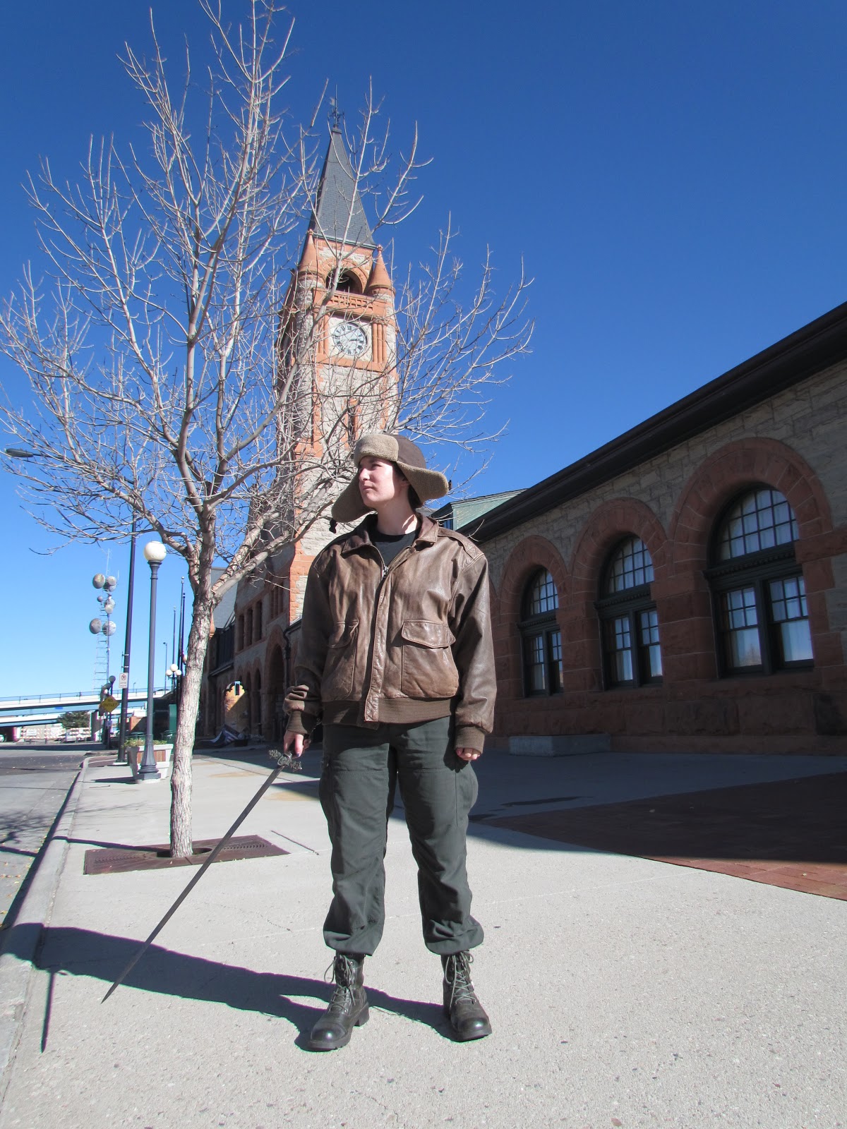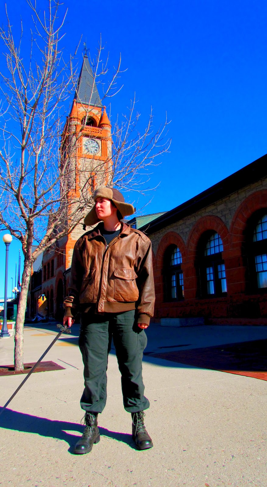 So, I scrapped these pictures, called them a test run, and we went into the city with an old sword, a new model, and William behind the camera. (And the author with a clearer idea in her head as to what she wanted.)