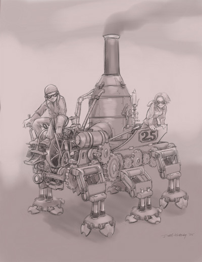 Jack wrote about the Marcher's legs and levers. She told how the men who run them are trained for years to work together. And all of that is good to know. But she didn't tell you how to stop one...I don't think she did at least.