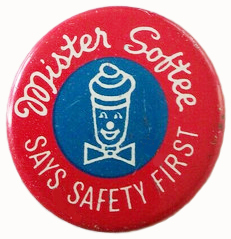 Mister Softee with his natty bow tie, born in New Jersey, was mainly peddled out of ice cream trucks, but there were also restaurants of the same name that served hamburgers, steaks, hot dogs, fish, etc., along with the creamy guy. In 1967 a mobile franchise cost $2,500 while a restaurant was ten times that, which may account for why there were then 1,600 trucks — even as far off as the French West Indies — but only 5 restaurants. Overall, Mister Softee, like Mister Steak, had a more successful life than most of the Misters.
