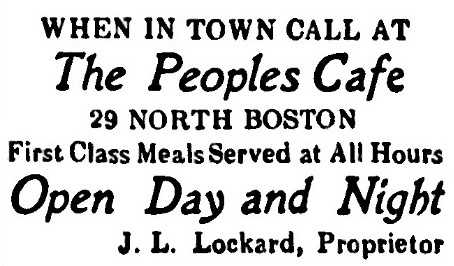 One of the most successful Black restaurant proprietors was Texas-born Joe Lockard who moved to Tulsa from his farm in Muskogee Indian Territory (Oklahoma). In 1914 he opened The People’s Café near Tulsa’s Frisco train depot. In 1920 he became president of the board of directors of a newly created investment company. That same year a white customer got into an argument with Lockard’s cook, shooting and killing the cook in the cafe’s dining room. Lockard’s café was destroyed by white rioters in 1921, but he continued in the café business into the 1930s, possibly later.