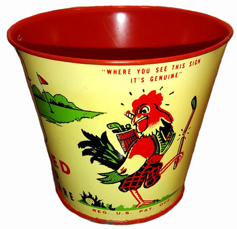 “In the Rough” was a perplexing phrase that often needed an explanation. It meant no silverware was provided despite the half chicken being unjointed. Evidently customers proved willing to adapt to “roughness,” although I’ve run across some evidence that over time some franchisees served the chicken in pieces. Another alternative was to serve the meal with a small metal pail filled with water for cleaning hands.