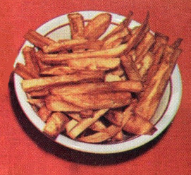 Cooking oil – If anything shouts restaurant fare, it is the long history of deep-fried food served in public eating places. Early fryers relied on lard, later replaced with cheaper cottonseed oil. The number of items that are fried has only increased over the decades, to include meats, fish, potatoes, a wide assortment of vegetables, even cheese.