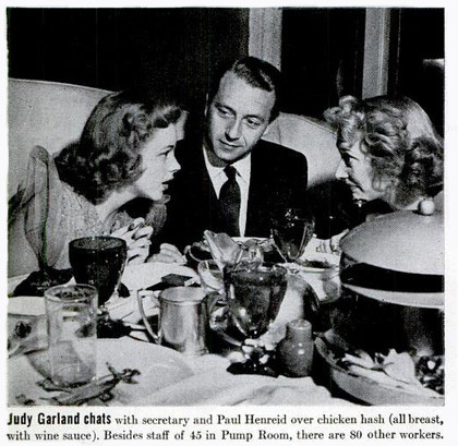 Top celebrities were escorted to Booth One, a cushy white leather nest where their job was to field calls from gossip columnists and smile as the flashbulbs went off. Their lunch may have been on the house, but they earned it. [It’s likely Judy Garland is talking with a columnist in the above Life magazine photo, 1943] Of course both the stars and the restaurant got publicity out of the deal.
