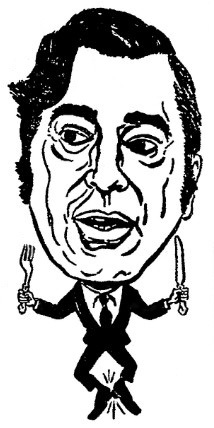 What were some of the most remarkable finds in these books? Richard Collin [above cartoon] discovered a number of dishes that he gave his highest praise, naming them “platonic dishes,” as perfect as that dish could possibly be. His New Orleans list of platonic dishes included Oysters Bienville and Fried Chicken at Chez Helene’s soul food restaurant — which he rated one of the city’s finest restaurants; Creole Gumbo at Dooky Chase; and Fried Potato Poor Boys at the dirt-cheap Martin’s Poor Boy.
