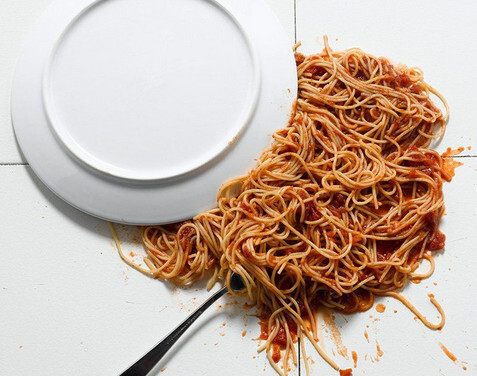 In discussing food spilled on the floor, he writes, “I have served . . . entrees spilled and then salvaged such as lasagne, beef stew, chili, pasta, and scrambled eggs. Steaks and chops are no problem at all. Simply put them back on the grill or in the pan to freshen them, after washing them under the faucet.” But he advises cooks to inspect the entree “looking for hairs and foreign pieces of food that do not complement the dish.”