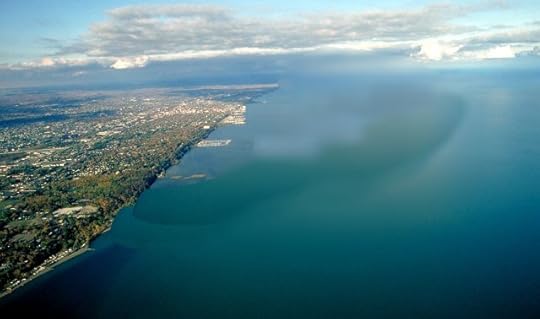 Yesterday, I introduced The Hand of Deucado and showed you the final design. Today I am going to show you how Bruce and I arrived at this unique structure.The first thing I had to do was find a shoreline. I took this image from a snapshot of Presque Isle State Park on Lake Erie in Pennsylvania. I liked the interplay of shore, water and clouds. The only problem was shoreline needed to be rotated left by 90 degrees but that wasn't a big deal: