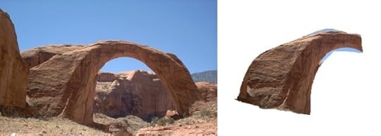 The next thing I needed was to find a general shape for the base of The Hand. I looked at many images of arches including The Gateway Arch in St. Louis until I came across the Rainbow Bridge National Monument in Utah. It was perfect. Here is an image of the arch and how I was able to extract the base structure using Paint Shop Pro: