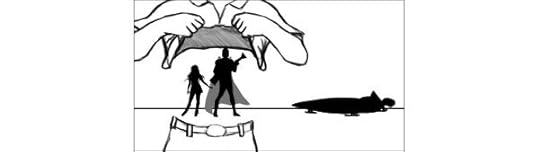 Yesterday, MINIMCOM unveiled a vest to protect Rei's spine while it heals. It consists of two plates, one in the front and one in the back. Together, they form a continuous, miniature PPT tunnel such that anything that comes in contact with Rei's torso or back would punch through the other side, essentially going around Rei's spine rather than bend it.My brother Bruce made an animatic version of the book trailer for Rome's Evolution and tried to capture this. However, we had decided to abandon the idea of a book trailer altogether so all I have are his sketches on what would have been in the trailer. Here you can see MINIMCOM's livetar with a cape, finally. Basically, this is just Rei lifting his shirt, showing you that you can see right though him and then him lowering his shirt again: