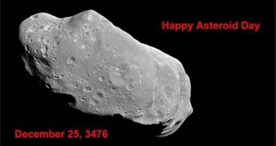 Every year, on December 25th, I wish you a Happy Asteroid Day. The reason I do this is because on this date, in the year 3476 AD, an asteroid was supposed to slam into the planet Deucado and kill everyone there. Rome and Rei interceded in the middle part of the novel Rome's Revolution and turned things around. After establishing a cease fire and preventing a war, they sent up an army of VIRUS unit-laden livetars who flew out and destroyed the asteroid thus saving the planet.Here is my standard greeting:
