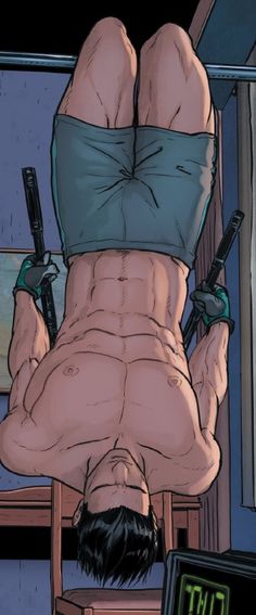 I also found this picture from Grayson #1 (I believe). The only thing the New 52 did right. They remembered Dick Grayson is a gloriously gorgeous man and gave us all fanservice in order to appreciate it.