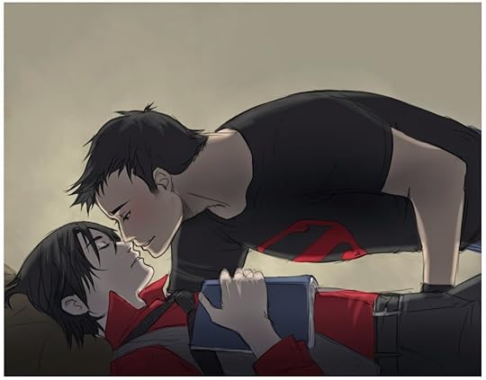 And here's a sexy pic of Tim Drake (Robin III) and Superboy (Kon-El). Because Tim/Kon makes me happy and gives me oh so much inspiration. Pic from Kaciart.
