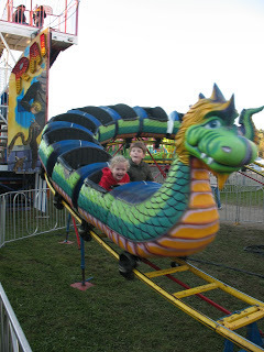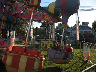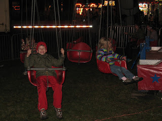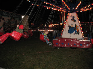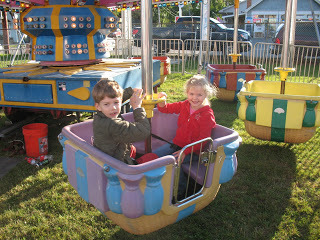 I took the fam to the county fair on Monday, our fifth(!) one here in Maine. Denisa had gotten the kids all hyped for it--TRC and DC both entered paintings in the fair, and so they were excited to see how they fared in the competition. (Sorry for the pun.) Denisa had entered a slew of things, too. How did they do?DC one first place for abstract art by a 3 year old, and TRC got second for his painting of a butterfly. (TRC was a tad disappointed DC beat him, but I reassured him that competition gets fiercer the older you get.) Denisa won best peppers, best onions, best jam, best recycled item (she turned a phone book into a basket), and various other second and third place ribbons. (I might have forgotten a first place in there, too--sorry, Denisa. You're just too talented for me to keep track of it all!)