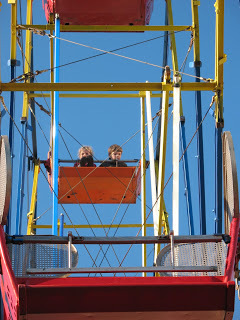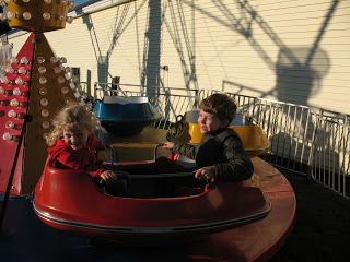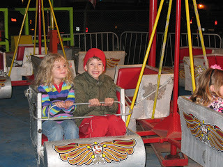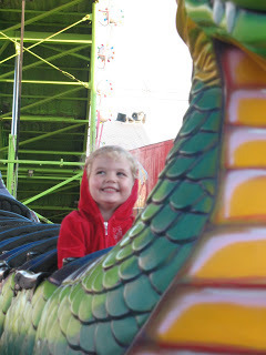 And then there were the rides. We discovered that DC is a total daredevil. She had no fear of any ride, and thought they were all a blast. Because she's so tall (43" or so), she could go on almost any ride she pleased. A rare event for a three year old. She loved them all--here's photographic proof of all the fun that was had: