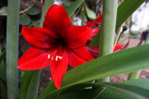 And we also ought to call atheism what it actually is. It calls itself a word which simply means not-God-ism, but that word misrepresents what atheists apparently believe. When you read their literature, you find them claiming that nothing in particular created the amazingly complex and profoundly beautiful reality that we can see around us now, which means therefore that all of what we see must have happened randomly. Never mind even talking about the stars! No need to bother to mention the exquisite beauty of a baby’s face! When her cat knocked over and wrecked my lovely amaryllis right before Christmas, my daughter as an apology fetched from the trash at our nearby Home Depot a half-dozen amaryllis bulb rejects, which was all that they had left. The bulbs looked hopeless, sprouted but white and dry and nearly dead in their boxes. My husband planted the two that didn’t come with pots, and I hopefully watered them all. And now, a month later, my office’s bow window is full of green stalks topped with buds that are opening to reveal gigantic bright-red flowers. I look at those plants which would all be dead if we hadn’t given them their chance at life, and I plan to do this every year!
