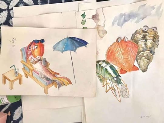 So the client was very happy with this, and I went ahead with the final image. I painted all the fish individually in watercolour: