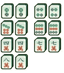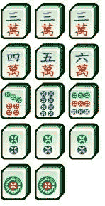 **** This is known as 小相公 xiǎo xiàng gong. Having too many tiles in your hand is 大相公 dà xiàng gong… 相公 is a common term in operas and novels for a young gentleman, or the way a wife addresses her husband – the modern equivalent would be 老公 lǎo gōng , the etymology is unclear – big husband / small husband?