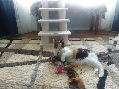 This is Dora, my soon to be 16-year-old calico. Sadly, Baby, the long-haired orange kitty passed several months back, leaving Dora as an only child.