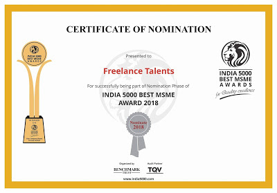 Freelance Talents nomination certificate India 5000 Best MSME Award 2018
